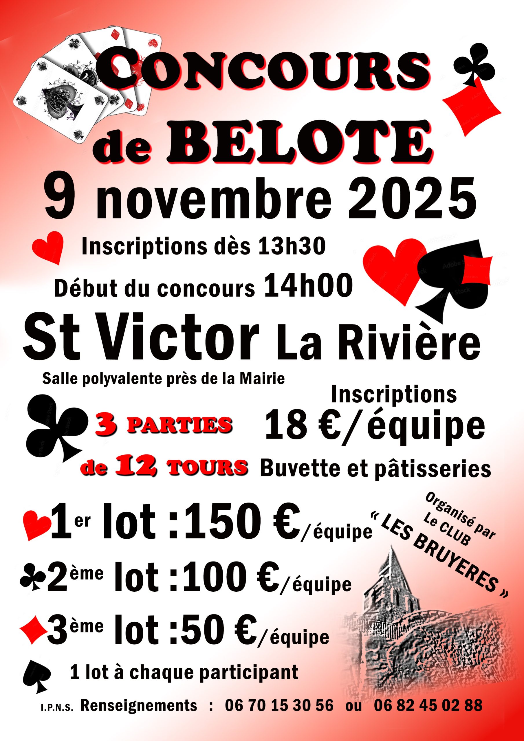 Organisé par le Club des Bruyères au Centre d’animation social et culturel dans le bourg de Saint-Victor-la-Rivière. Renseignements au 06.70.15.30.56 ou 06.82.45.02.88